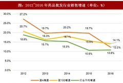 2016年,医药零售企业销售增速小幅上涨;随着龙头企业推进兼并,药品零售企业连锁率进一步提高。预计未来,“医药分开”改革政策使得零售药店获得新的发展空间,随着连锁率的进一步提升,零售药品市场销售额将呈现逐渐向中大型连锁企业集中的趋势。