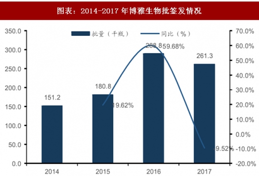 上海莱士17年纤原批签发增速回落至7.4%,市场占比达到52%;受上海莱士近年批量猛增影响,博雅的纤原批签发17年同比下降9.5%。另外,华兰生物的批签发也快速增加。