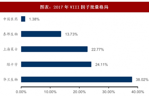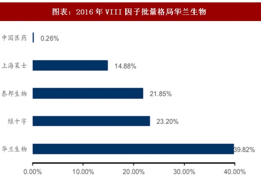 华兰生物继续保持viii因子市场中的主导地位。 华兰生物在16年和17年均保持了40%左右的市场份额。