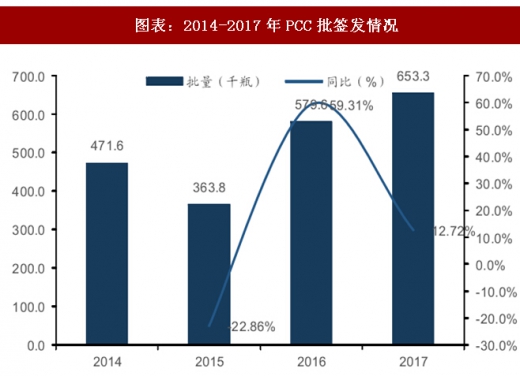 pcc在17年增速则增长至27.6%,三年复合增速约20%。pcc市场约为4亿,预计未来还有较大上涨空间。