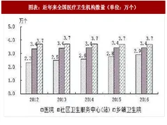 在我国“医药不分”的体制下,医院销售的药品占我国药品销售市场份额的 70%以上,医院在购销两端具有较大的话语权,现仍然是药品销售的主要渠道。从医疗机构数量上看,根据《2016 年我国卫生和计划生育事业发展统计公报》显示,截至 2016 年底,全国医疗卫生机构总数达 983,394 个,比上年减少 134 个。其中:医院 29,140 个,基层医疗卫生机构 926,518 个,专业公共卫生机构 24,866 个。与上年相比,医院增加 1,553 个,基层医疗卫生机构增加 5,748 个,专业公共卫生机构减少 7,061 个,主要系计划生育技术服务机构减少所致。