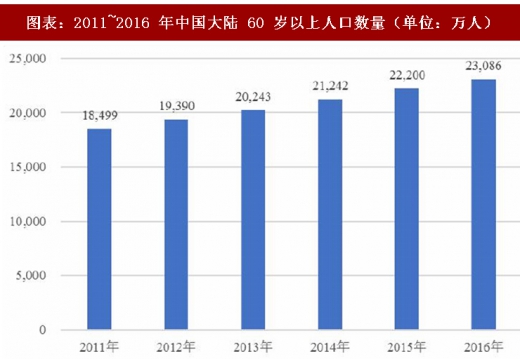 近年来,我国人口数量的增长及人口老龄化带动医药终端需求稳步增长。民政部公布的《2016 年社会服务发展统计公报》报告显示,截至 2016 年底,全国 60 岁及以上老年人口 23,086 万人,占总人口的 16.7%,其中 65 岁及以上人口 15,003 万人,占总人口的 10.8%。中国正逐渐步入老龄化社会,预计到 2050 年,中国老龄人口比例将超过 30%。65 岁以上是疾病的高发期,老龄人口的快速增加对医药消费需求的提升起到了很大的作用。