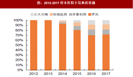 进口替代是国内优质仿制药企业持续成长的主要动力,其中主要代表有、、卡培他滨、腺苷蛋氨酸等。从市占率来看,华东医药阿卡波糖由2012年的15.77%上升到2017年的29.05%,正大天晴的恩替卡韦由2012年的25.81%上升到2017的44.22%,海正药业的腺苷蛋氨酸由2012年的21.52%上升到2017h1的57.45%,恒瑞、齐鲁和正大天晴的卡培他滨从零起步到2017合计占比27.53%。