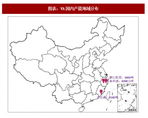 国内va产能集中在浙江和福建两省,新和成va生产线全部在浙江上虞基地,浙江医药va产能集中在浙江绍兴昌海生物,金达威产能在福建厦门。