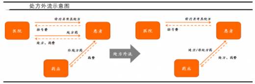 处方外流来源于长期以来医药分开的政策导向,是降低药价工作中的重要一环,在2009年国务院关于深化医改的文件中就已提及。由于药品长久以来是医院创收的主要来源,早些年受制于配套政策的不确定,处方外流并未真正成为趋势。
