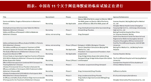 中国阿兹海默症患者估计有1000万,数量居全球之首,而且每年平均有30万新发。目前有11项正在进行中的临床试验在clinicaltrials.gov上注册,操作者包括本土和礼来等跨国公司。巨大的临床需求和vc/pe机构的关注,有望在这一领域诞生出更多的本土原研药创业企业。