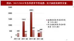 2017年第一季度疫苗批签发量为9864万支/瓶/粒,2018年第一季度疫苗批签发量为9232万支/瓶/粒,同比下降6.41%。但2017年第一季度二类疫苗批签发量为3914万支/瓶/粒,2018年第一季度二类疫苗批签发量为4712万支/瓶/粒,同比上升20.39%,迎来“开门红”。但部分二类疫苗任然批签发量不及2017年第一季度,其包括吸附无百白破脊髓灰质炎b型流感嗜血杆菌联合疫苗(五联苗)、双价肾综合征出血热灭活疫苗、b型流感嗜血杆菌疫苗、轮状病毒疫苗、霍乱疫苗。但20μg乙肝疫苗、acw135y脑膜炎疫苗、ac群脑膜炎b型流感嗜血杆菌疫苗疫苗、森林脑炎、肺炎球菌疫苗、肠道病毒71型疫苗、人乳头瘤状病毒疫苗的批签发量均有上升,其中20μg乙肝疫苗、acw135y脑膜炎疫苗、肺炎球菌疫苗、肠道病毒71型疫苗、人乳头瘤状病毒疫苗尤为显著均比2017年第一季度批签发量翻一倍以上。2017年第一季度一类疫苗批签发量为5951万支/瓶/粒,2018年第一季度一类疫苗批签发量为4520万支/瓶/粒,同比下降24.05%,主要由于卡介苗、麻风腮联苗、甲肝疫苗与10μg乙肝疫苗批签发量下降所导致。