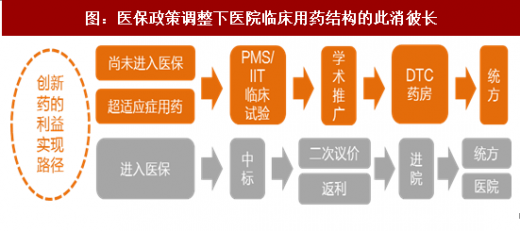 诺奖经济学奖得主阿罗在 1963 年发表的《不确定性和医疗的福利经济学》中首先提出了医患关系中的信息不对称理论,1972 年诱导需求理论进一步阐释了医生可以通过信息不对称来达到自身最大化利益从而产生道德风险。着眼当下,国内部分注射剂和辅助用药品种一度是临床中医生和院方的最大利益品种。随着医保政策的调整,高定价、疗效明确的创新药既在临床中显示出良好的疗效,并且在取消药品加成后,随着二次议价、返利等方式的兴起,药品依旧是医院方实现利益的重要来源。