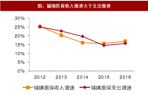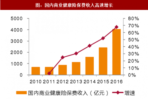 从动态的支付能力角度来看,除了国内人均收入的逐步提升引致的消费升级,作为处方药最大支付方的保险在支付端拥有更好的保障,一方面,我国医保资金从 2015 年开始收入端增速逐步提升,已经连续两年超过支出端增速,这也为我国社会医保有能力在未来将更多的临床需求迫切的创新药更加及时的纳入报销目录;而作为未来我国医保体系重要组成部分的商业健康险,近年来的高速发展使得商业保险在健康保险领域拥有愈发重要的地位,未来将在未能及时纳入医保、患者需求迫切的高端创新药领域成为支付的重要力量,进一步提升高端创新药的用药需求。