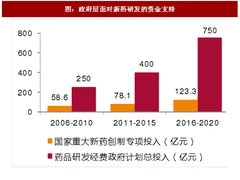 医药行业尤其是药品研发领域同时拥有强监管和高资本投入高科技这两个属性,使得医药行业既受到严格的行业监管,又非常依赖政府和民间的资本投入。数据显示,无论从政府层面的专项支持,还是公开可得的主要制药工业企业历年研发投入,都呈现出快速增长的态势,这将是未来行业增长的源泉。