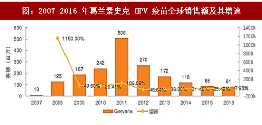 2016 年,葛兰素史克 hpv 疫苗全球销售额为 81 百万英镑,同比增长-7.95%。从 2012 年以来,葛兰素史克的 hpv 疫苗产品 gervarix 的全球销售额连年下降,到 2015 年时,希瑞适销售份额不足4%。主要原因是国际市场上对于四价及九价的hpv疫苗接受度不断提高,欧美的二价hpv疫苗市场已饱和,再加上 2016 年 10 月初,美国食药总局把默沙东的 gardasil 9 放入了免疫计划推荐目录,对于 gsk 的产品而言亦是挑战,gsk 随后逐步退出美国市场。