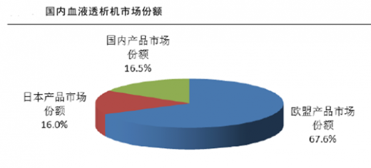 国外进口血液透析机在国内同类产品市场上占据了具有绝对优势的市场份额,其产品在中国市场上拥有绝对的主导地位。
