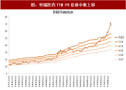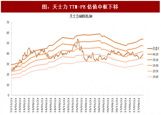 真正的医保控费始于2014年,主要是开始对各家医院医保总支出的限制;中药独家品种、辅助用药等开始受到真正限制。中成药行业增速从2012年的20%以上预计下滑到2017年的约6-7%(扣除高开因素),并长期处于低位;而化学药需求总体稳定上升,未来受到创新因素和供给侧改革(一致性评价)等龙头公司利润有保障、估值将保持较高位置。例如,恒瑞是化药代表的龙头,估值中枢从2014年开始逐步上移,而现代中药龙头的天士力估值下移。