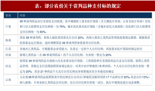提及支付比例的省份中,宁夏和云南对于谈判品种另行规定了支付比例;海南和河南规定自付比例为 20%;河南和海南规定自付比例为 20%。