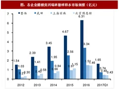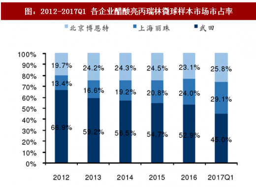 图:2012-2017q1 各企业醋酸亮丙瑞林微球样本市场市占率