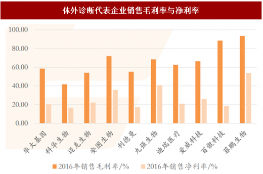 体外诊断代表企业销售毛利率与净利率